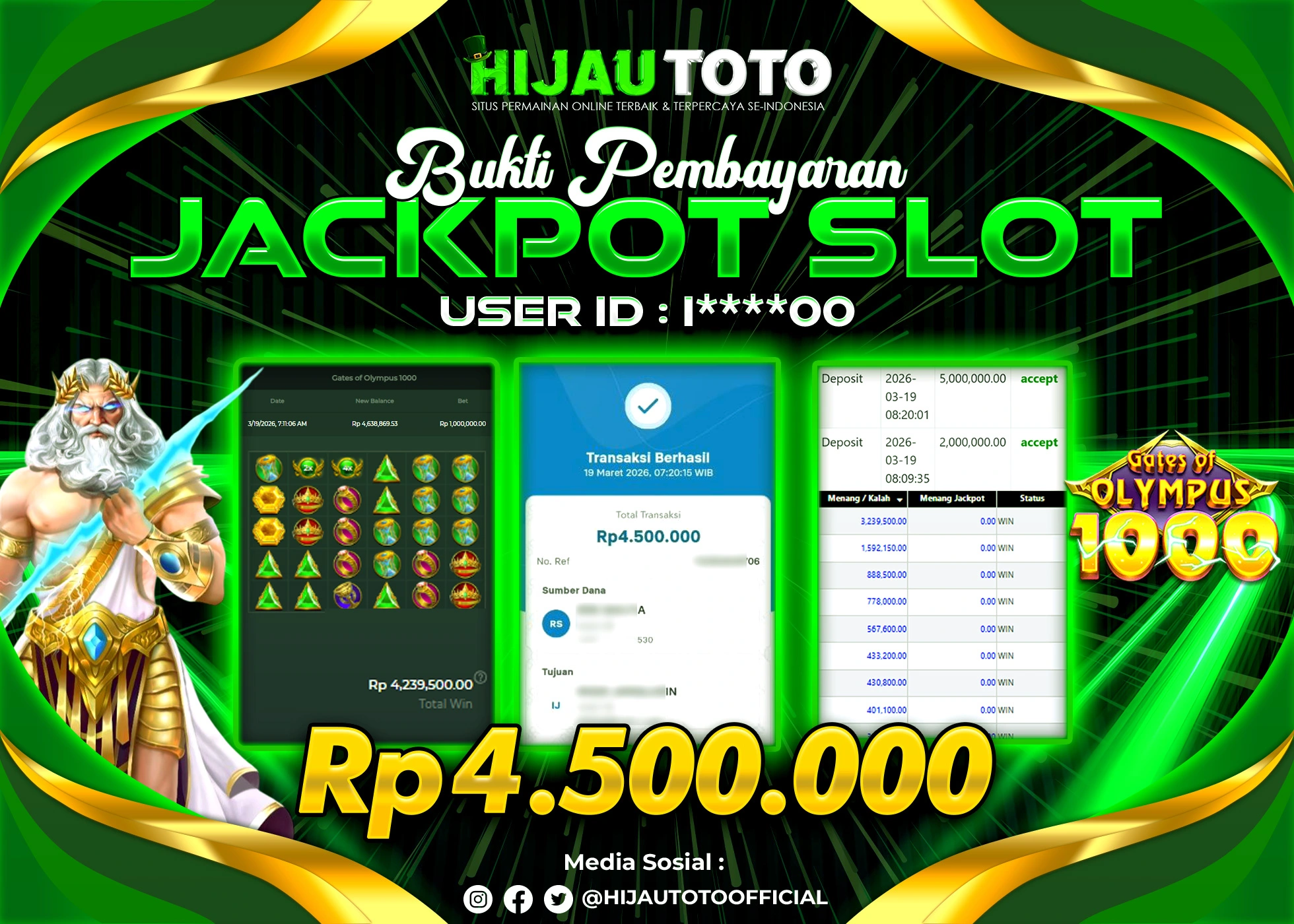 Selamat datang di HIJAUTOTO, tempatnya seru-seruan dan cuan besar! Mulai main cukup dengan modal Rp5.000 aja, taruhan super murah dari Rp100 perak! Mau main slot yang penuh warna? Atau togel dari 20 pasaran paling hits? Atau mungkin tembak ikan yang bikin deg-degan? Tenang, ada juga taruhan bola, sabung ayam, dan live casino yang bikin suasana makin hidup! Daftar sekarang dan dapetin bonus new member 100% langsung, biar modalmu makin tebal. Deposit gampang banget, bisa pakai QRIS, dan kalau butuh bantuan, customer service kita siap 24 jam nonstop. Jadi, tunggu apa lagi? Yuk, gabung dan bawa pulang kemenangannya cuma di HIJAUTOTO!