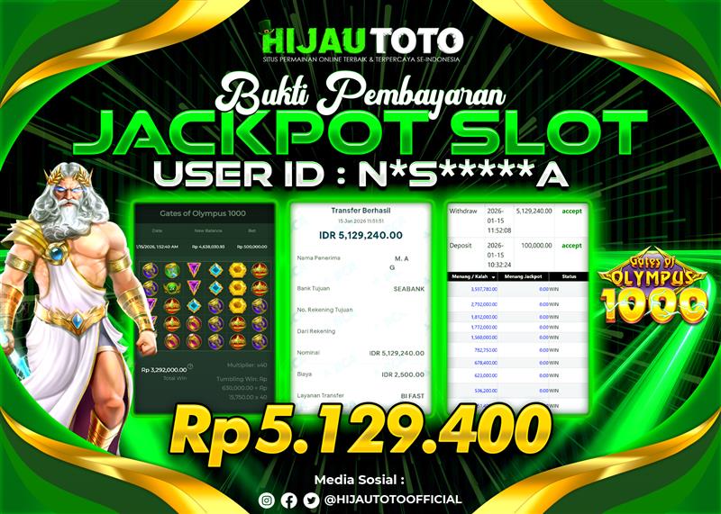 Selamat datang di HIJAUTOTO, tempatnya seru-seruan dan cuan besar! Mulai main cukup dengan modal Rp5.000 aja, taruhan super murah dari Rp100 perak! Mau main slot yang penuh warna? Atau togel dari 20 pasaran paling hits? Atau mungkin tembak ikan yang bikin deg-degan? Tenang, ada juga taruhan bola, sabung ayam, dan live casino yang bikin suasana makin hidup! Daftar sekarang dan dapetin bonus new member 100% langsung, biar modalmu makin tebal. Deposit gampang banget, bisa pakai QRIS, dan kalau butuh bantuan, customer service kita siap 24 jam nonstop. Jadi, tunggu apa lagi? Yuk, gabung dan bawa pulang kemenangannya cuma di HIJAUTOTO!