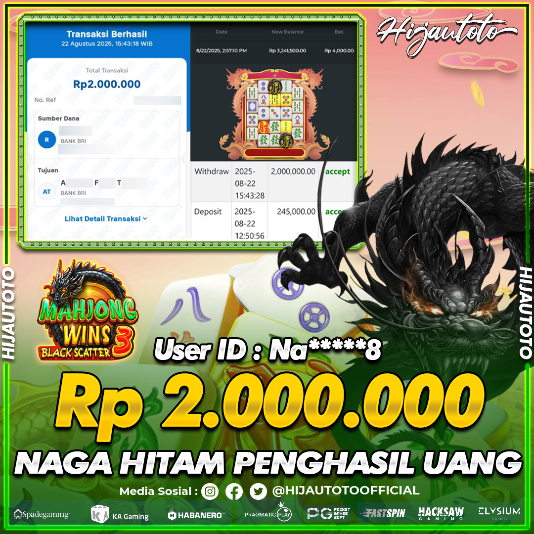 Selamat Kepada Member HIJAUTOTO HA*****9 Telah Jackpot Di SLOT MAHJONG WINS 3 BLACK SCATTER