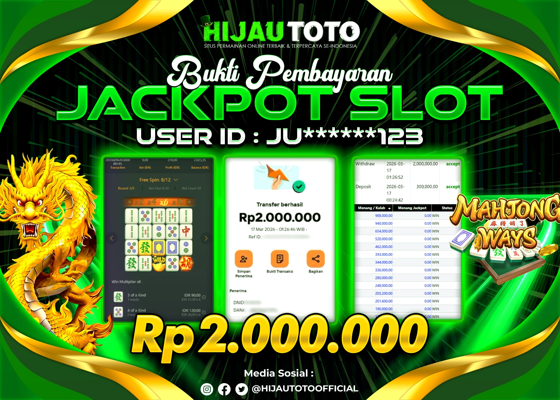 Selamat datang di HIJAUTOTO, tempatnya seru-seruan dan cuan besar! Mulai main cukup dengan modal Rp5.000 aja, taruhan super murah dari Rp100 perak! Mau main slot yang penuh warna? Atau togel dari 20 pasaran paling hits? Atau mungkin tembak ikan yang bikin deg-degan? Tenang, ada juga taruhan bola, sabung ayam, dan live casino yang bikin suasana makin hidup! Daftar sekarang dan dapetin bonus new member 100% langsung, biar modalmu makin tebal. Deposit gampang banget, bisa pakai QRIS, dan kalau butuh bantuan, customer service kita siap 24 jam nonstop. Jadi, tunggu apa lagi? Yuk, gabung dan bawa pulang kemenangannya cuma di HIJAUTOTO!