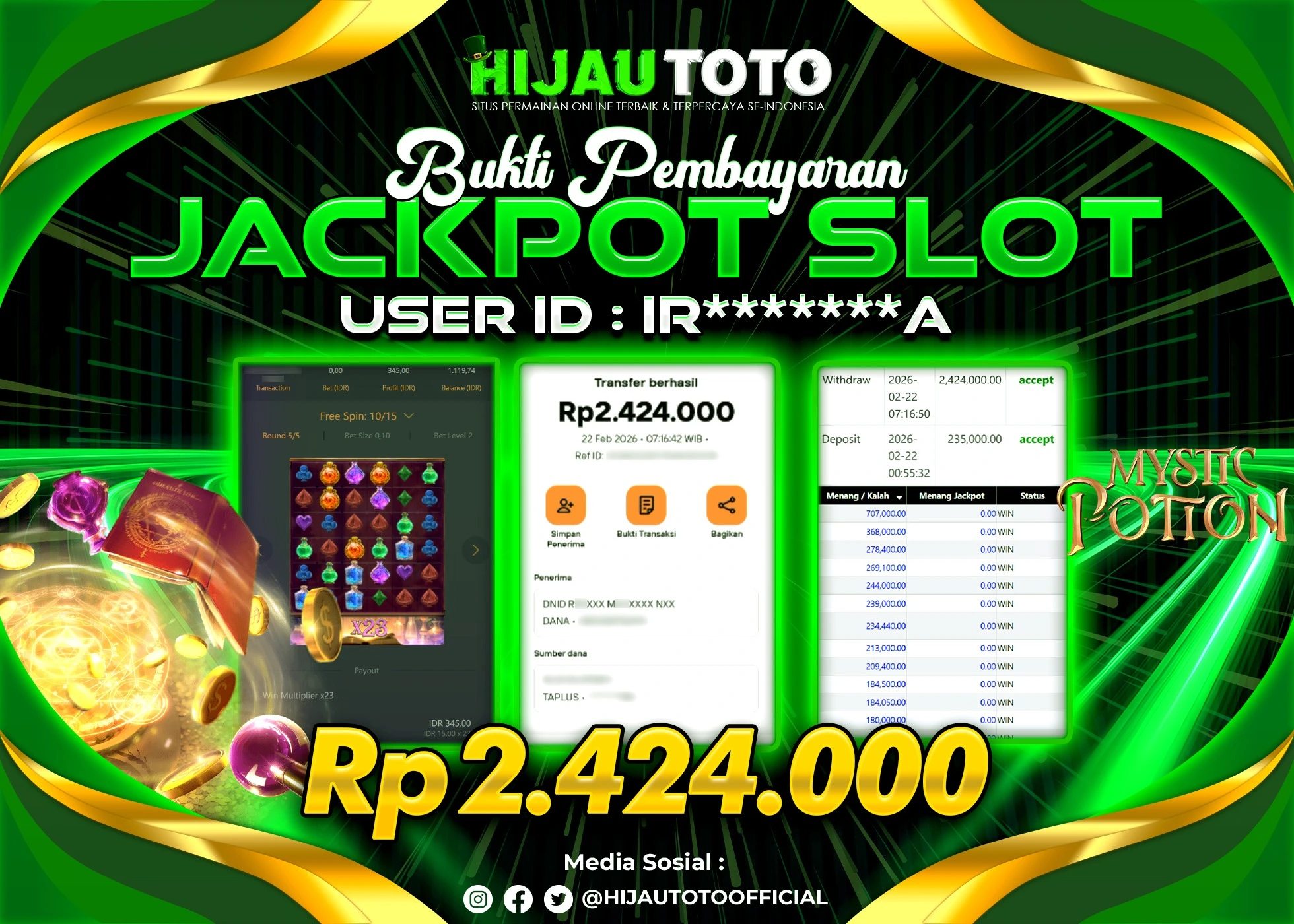 Selamat datang di HIJAUTOTO, tempatnya seru-seruan dan cuan besar! Mulai main cukup dengan modal Rp5.000 aja, taruhan super murah dari Rp100 perak! Mau main slot yang penuh warna? Atau togel dari 20 pasaran paling hits? Atau mungkin tembak ikan yang bikin deg-degan? Tenang, ada juga taruhan bola, sabung ayam, dan live casino yang bikin suasana makin hidup! Daftar sekarang dan dapetin bonus new member 100% langsung, biar modalmu makin tebal. Deposit gampang banget, bisa pakai QRIS, dan kalau butuh bantuan, customer service kita siap 24 jam nonstop. Jadi, tunggu apa lagi? Yuk, gabung dan bawa pulang kemenangannya cuma di HIJAUTOTO!
