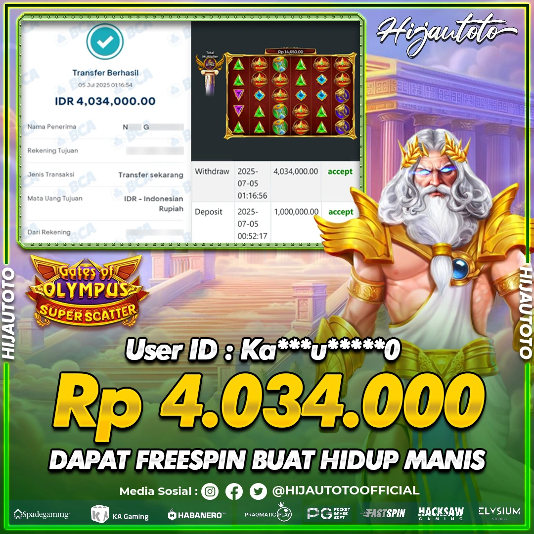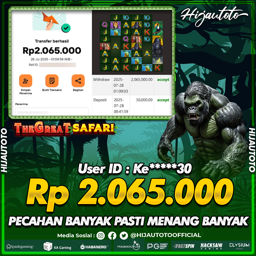 Selamat datang di HIJAUTOTO, tempatnya seru-seruan dan cuan besar! Mulai main cukup dengan modal Rp5.000 aja, taruhan super murah dari Rp100 perak! Mau main slot yang penuh warna? Atau togel dari 20 pasaran paling hits? Atau mungkin tembak ikan yang bikin deg-degan? Tenang, ada juga taruhan bola, sabung ayam, dan live casino yang bikin suasana makin hidup! Daftar sekarang dan dapetin bonus new member 100% langsung, biar modalmu makin tebal. Deposit gampang banget, bisa pakai QRIS, dan kalau butuh bantuan, customer service kita siap 24 jam nonstop. Jadi, tunggu apa lagi? Yuk, gabung dan bawa pulang kemenangannya cuma di HIJAUTOTO!