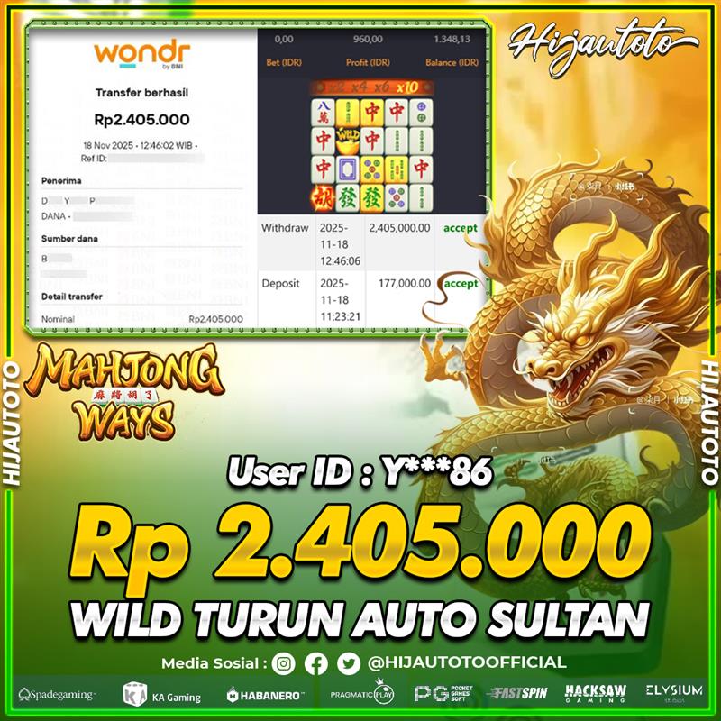 Karena berhasil memenangkan Rp.Rp.2.300.000 dari permainan seru SLOT MAHJONG WAYS di HIJAUTOTO! πŸ’°πŸ’Έ