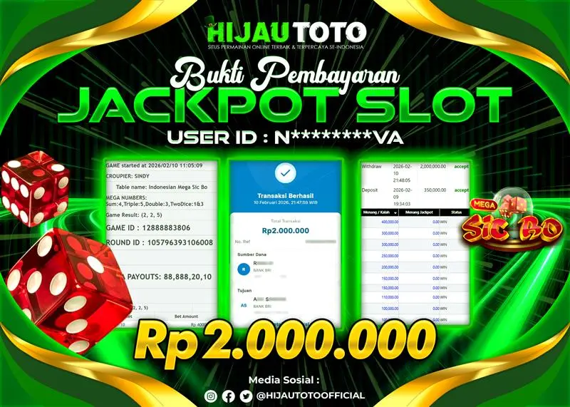 Selamat Kepada Member HIJAUTOTO N********VA Telah Jackpot Di SLOT LIVE CASINO SIC BO