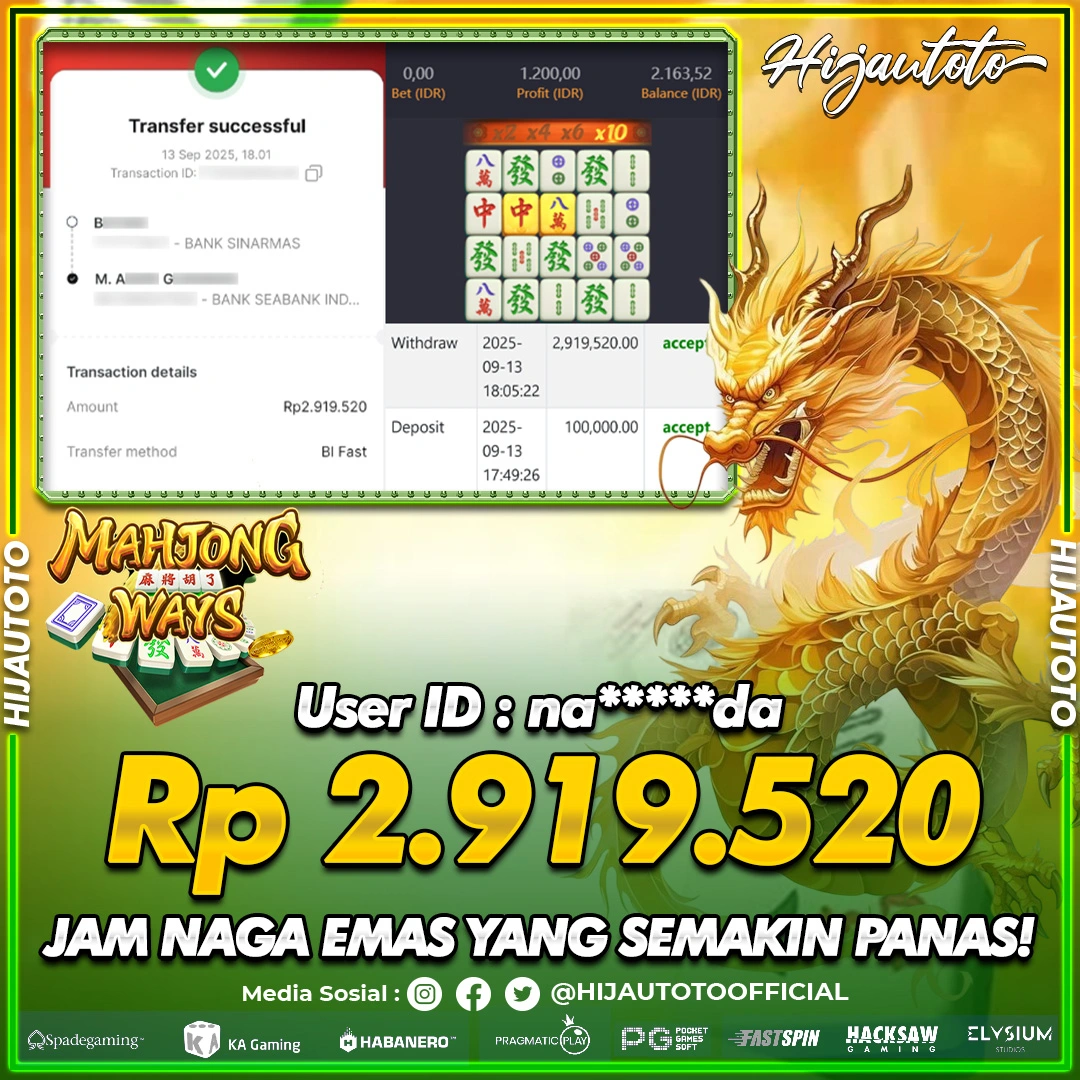Cuma di HIJAUTOTO, tempat paling AMAN, CEPAT, & TERPERCAYA buat pecinta game SLOT MAHJONG WAYS 2!