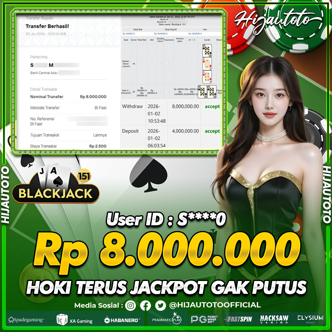 Selamat datang di HIJAUTOTO, tempatnya seru-seruan dan cuan besar! Mulai main cukup dengan modal Rp5.000 aja, taruhan super murah dari Rp100 perak! Mau main slot yang penuh warna? Atau togel dari 20 pasaran paling hits? Atau mungkin tembak ikan yang bikin deg-degan? Tenang, ada juga taruhan bola, sabung ayam, dan live casino yang bikin suasana makin hidup! Daftar sekarang dan dapetin bonus new member 100% langsung, biar modalmu makin tebal. Deposit gampang banget, bisa pakai QRIS, dan kalau butuh bantuan, customer service kita siap 24 jam nonstop. Jadi, tunggu apa lagi? Yuk, gabung dan bawa pulang kemenangannya cuma di HIJAUTOTO!