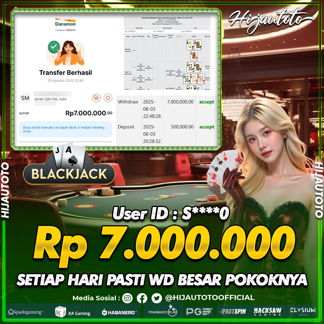 Nikmati pengalaman bermain casino langsung dari dealer profesional dalam fitur Live Casino HIJAUTOTO. Bermain blackjack, roulette, baccarat, dan permainan casino klasik lainnya secara real-time dengan suasana yang autentik dan interaktif.