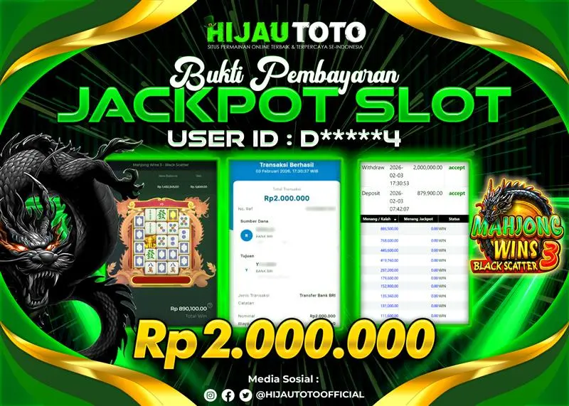 Selamat datang di HIJAUTOTO, tempatnya seru-seruan dan cuan besar! Mulai main cukup dengan modal Rp5.000 aja, taruhan super murah dari Rp100 perak! Mau main slot yang penuh warna? Atau togel dari 20 pasaran paling hits? Atau mungkin tembak ikan yang bikin deg-degan? Tenang, ada juga taruhan bola, sabung ayam, dan live casino yang bikin suasana makin hidup! Daftar sekarang dan dapetin bonus new member 100% langsung, biar modalmu makin tebal. Deposit gampang banget, bisa pakai QRIS, dan kalau butuh bantuan, customer service kita siap 24 jam nonstop. Jadi, tunggu apa lagi? Yuk, gabung dan bawa pulang kemenangannya cuma di HIJAUTOTO!