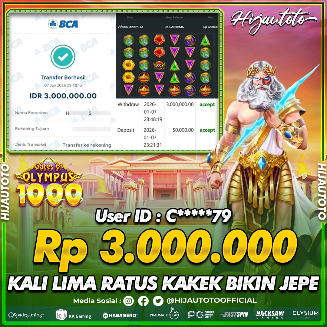 Karena berhasil memenangkan Rp.Rp.6.002.000 dari permainan seru SLOT GATES OF OLYMPUS SUPER SCATTER di HIJAUTOTO! πŸ’°πŸ’Έ