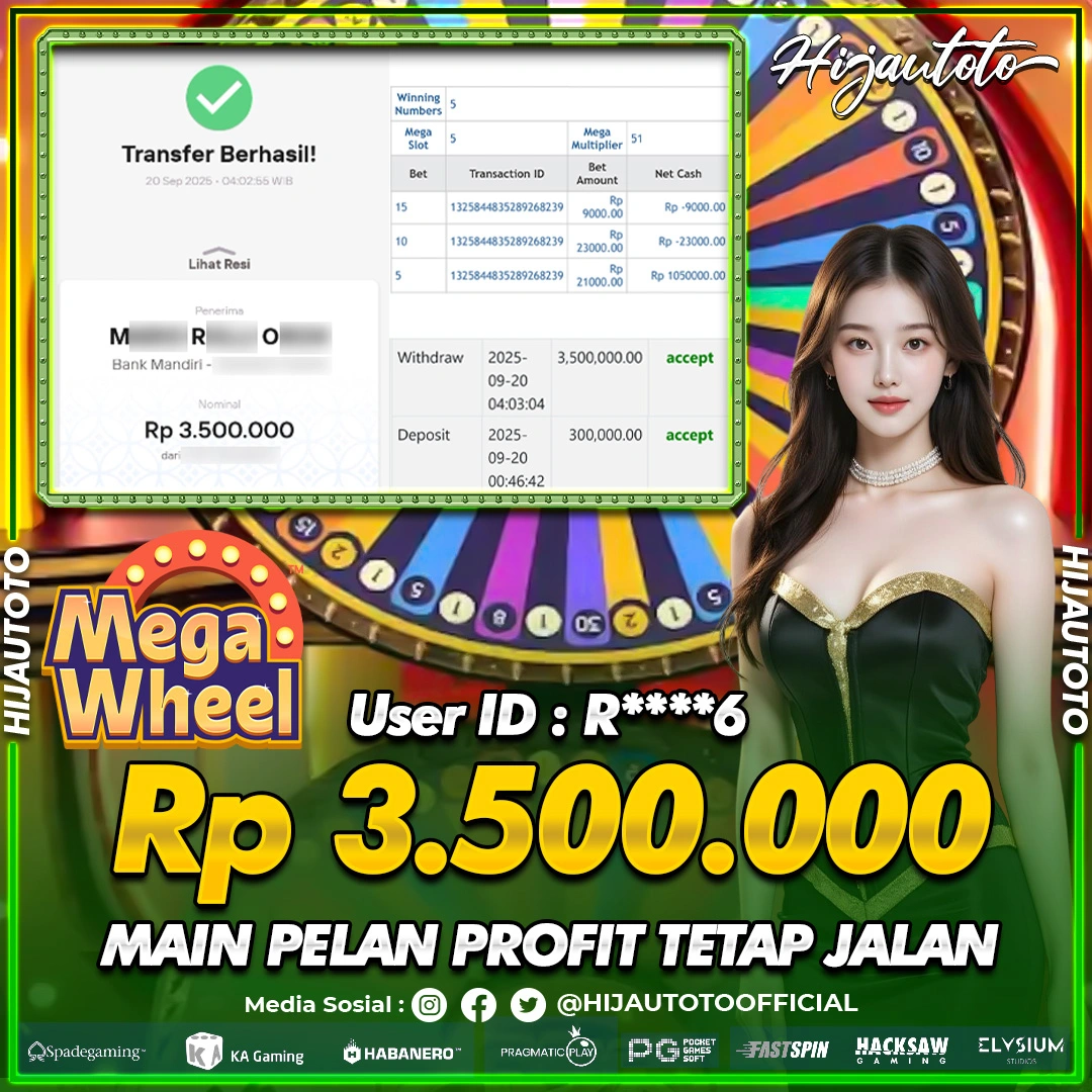 Selamat Kepada Member HIJAUTOTO R****6 Telah Jackpot Di LIVE CASINO MEGA WHEEL