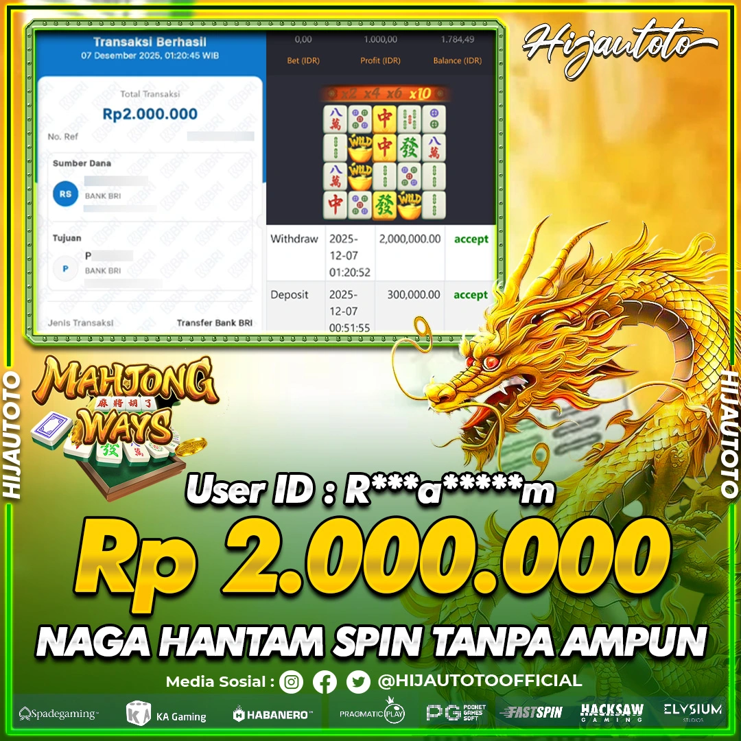 Selamat datang di HIJAUTOTO, tempatnya seru-seruan dan cuan besar! Mulai main cukup dengan modal Rp5.000 aja, taruhan super murah dari Rp100 perak! Mau main slot yang penuh warna? Atau togel dari 20 pasaran paling hits? Atau mungkin tembak ikan yang bikin deg-degan? Tenang, ada juga taruhan bola, sabung ayam, dan live casino yang bikin suasana makin hidup! Daftar sekarang dan dapetin bonus new member 100% langsung, biar modalmu makin tebal. Deposit gampang banget, bisa pakai QRIS, dan kalau butuh bantuan, customer service kita siap 24 jam nonstop. Jadi, tunggu apa lagi? Yuk, gabung dan bawa pulang kemenangannya cuma di HIJAUTOTO!