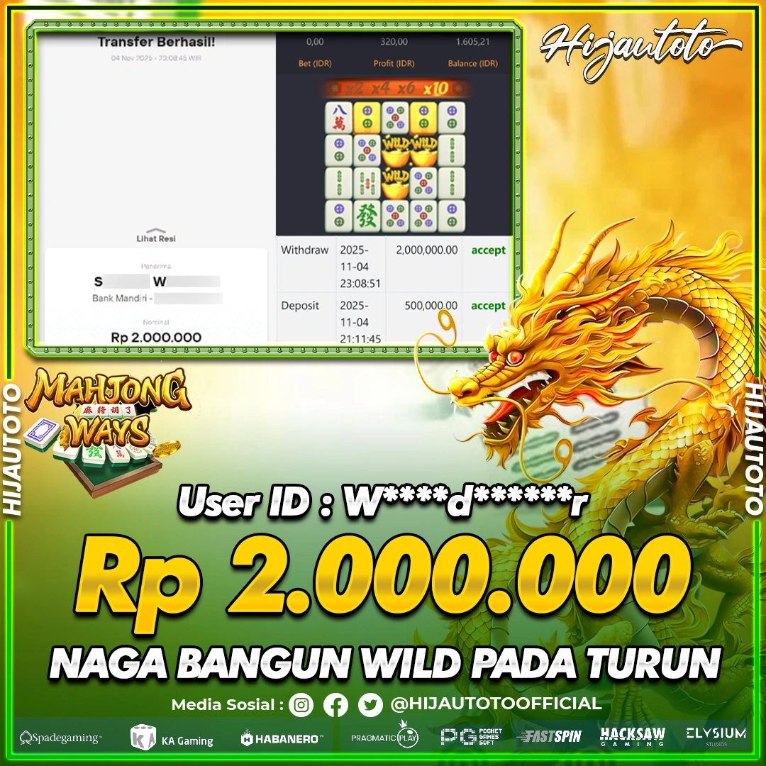 Selamat datang di HIJAUTOTO, tempatnya seru-seruan dan cuan besar! Mulai main cukup dengan modal Rp5.000 aja, taruhan super murah dari Rp100 perak! Mau main slot yang penuh warna? Atau togel dari 20 pasaran paling hits? Atau mungkin tembak ikan yang bikin deg-degan? Tenang, ada juga taruhan bola, sabung ayam, dan live casino yang bikin suasana makin hidup! Daftar sekarang dan dapetin bonus new member 100% langsung, biar modalmu makin tebal. Deposit gampang banget, bisa pakai QRIS, dan kalau butuh bantuan, customer service kita siap 24 jam nonstop. Jadi, tunggu apa lagi? Yuk, gabung dan bawa pulang kemenangannya cuma di HIJAUTOTO!