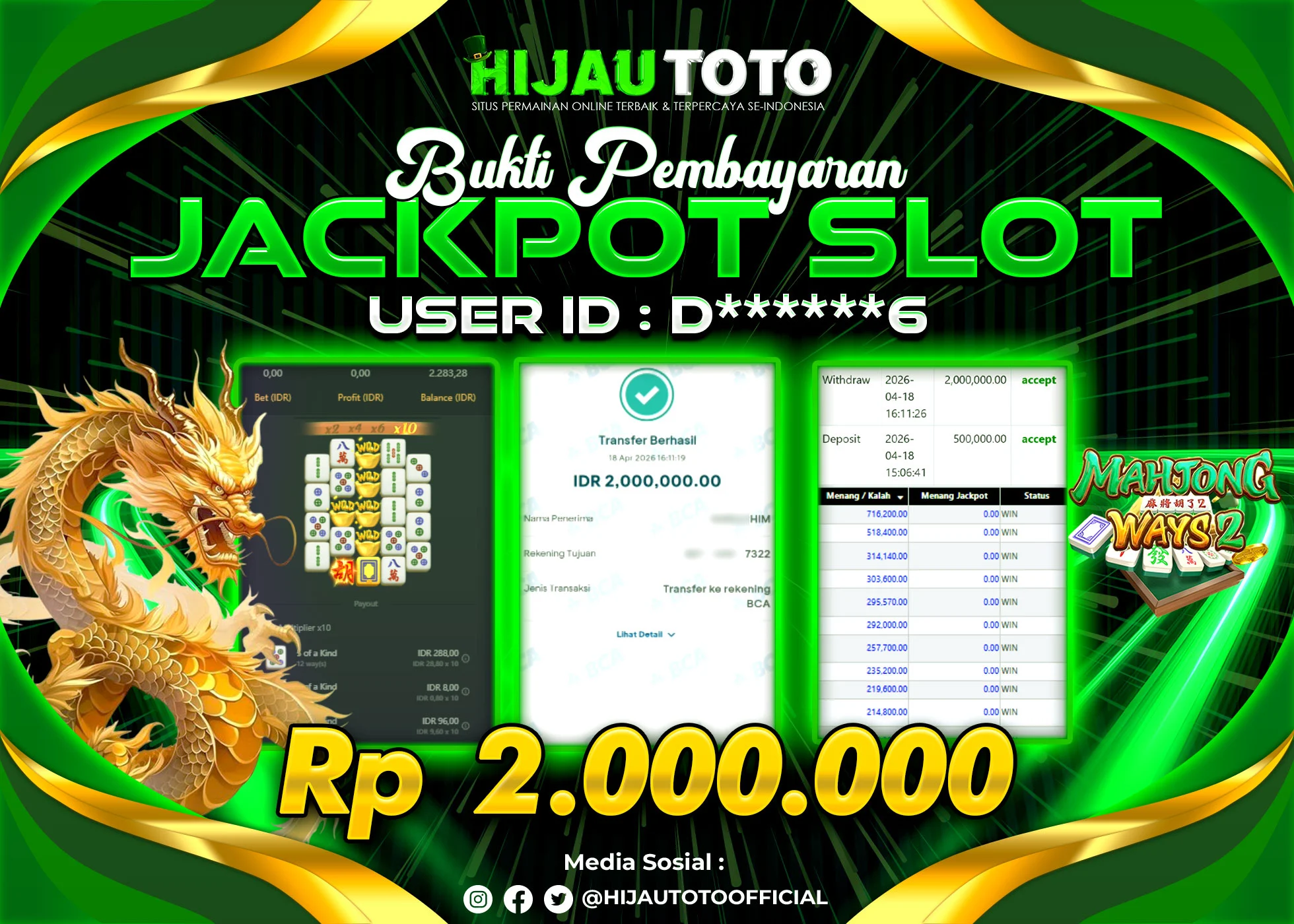 HIJAUTOTO adalah pilihan terbaik bagi Anda yang mencari platform judi online terpercaya dengan modal terjangkau, ragam permainan lengkap, bonus menguntungkan, dan layanan profesional 24 jam. Semua kebutuhan hiburan dan keuntungan Anda terpenuhi dalam satu tempat.