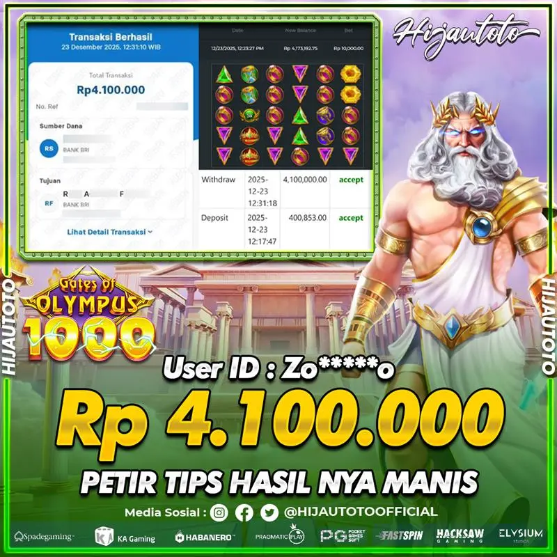 β¨ JACKPOT DI SLOT GATES OF OLYMPUS 1000 β¨