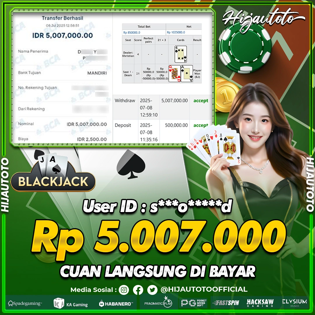 Selamat datang di HIJAUTOTO, tempatnya seru-seruan dan cuan besar! Mulai main cukup dengan modal Rp5.000 aja, taruhan super murah dari Rp100 perak! Mau main slot yang penuh warna? Atau togel dari 20 pasaran paling hits? Atau mungkin tembak ikan yang bikin deg-degan? Tenang, ada juga taruhan bola, sabung ayam, dan live casino yang bikin suasana makin hidup! Daftar sekarang dan dapetin bonus new member 100% langsung, biar modalmu makin tebal. Deposit gampang banget, bisa pakai QRIS, dan kalau butuh bantuan, customer service kita siap 24 jam nonstop. Jadi, tunggu apa lagi? Yuk, gabung dan bawa pulang kemenangannya cuma di HIJAUTOTO!