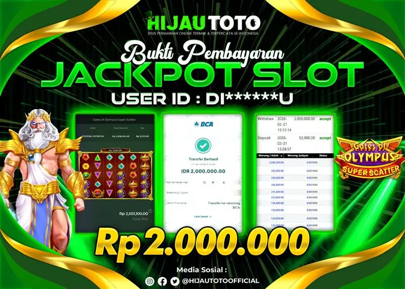 Selamat datang di HIJAUTOTO, tempatnya seru-seruan dan cuan besar! Mulai main cukup dengan modal Rp5.000 aja, taruhan super murah dari Rp100 perak! Mau main slot yang penuh warna? Atau togel dari 20 pasaran paling hits? Atau mungkin tembak ikan yang bikin deg-degan? Tenang, ada juga taruhan bola, sabung ayam, dan live casino yang bikin suasana makin hidup! Daftar sekarang dan dapetin bonus new member 100% langsung, biar modalmu makin tebal. Deposit gampang banget, bisa pakai QRIS, dan kalau butuh bantuan, customer service kita siap 24 jam nonstop. Jadi, tunggu apa lagi? Yuk, gabung dan bawa pulang kemenangannya cuma di HIJAUTOTO!