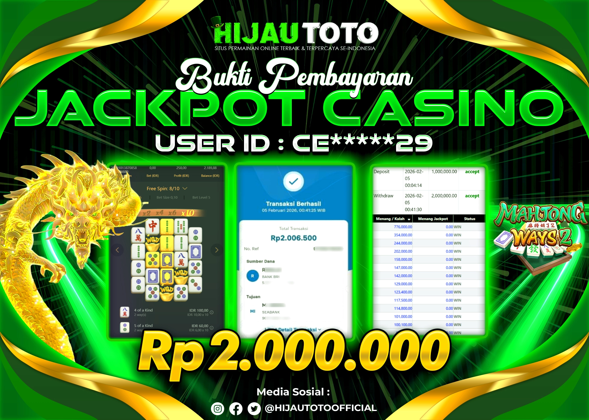 Selamat datang di HIJAUTOTO, tempatnya seru-seruan dan cuan besar! Mulai main cukup dengan modal Rp5.000 aja, taruhan super murah dari Rp100 perak! Mau main slot yang penuh warna? Atau togel dari 20 pasaran paling hits? Atau mungkin tembak ikan yang bikin deg-degan? Tenang, ada juga taruhan bola, sabung ayam, dan live casino yang bikin suasana makin hidup! Daftar sekarang dan dapetin bonus new member 100% langsung, biar modalmu makin tebal. Deposit gampang banget, bisa pakai QRIS, dan kalau butuh bantuan, customer service kita siap 24 jam nonstop. Jadi, tunggu apa lagi? Yuk, gabung dan bawa pulang kemenangannya cuma di HIJAUTOTO!