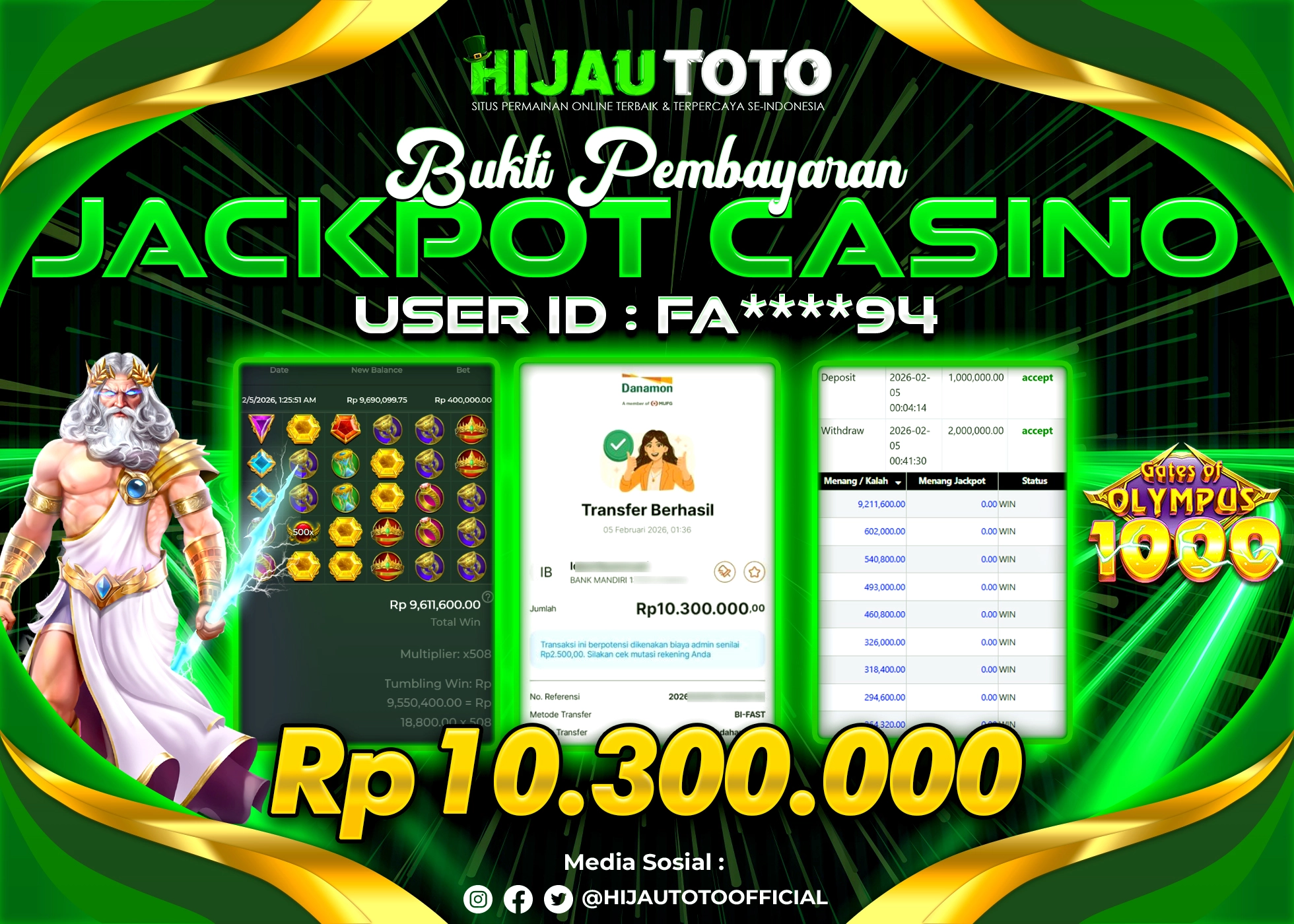 Selamat Kepada Member HIJAUTOTO FA****94 Telah Jackpot Di SLOT GATES OF OLYMPUS 1000