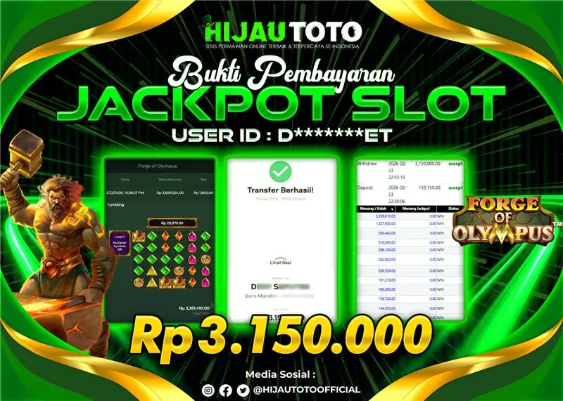 Selamat datang di HIJAUTOTO, tempatnya seru-seruan dan cuan besar! Mulai main cukup dengan modal Rp5.000 aja, taruhan super murah dari Rp100 perak! Mau main slot yang penuh warna? Atau togel dari 20 pasaran paling hits? Atau mungkin tembak ikan yang bikin deg-degan? Tenang, ada juga taruhan bola, sabung ayam, dan live casino yang bikin suasana makin hidup! Daftar sekarang dan dapetin bonus new member 100% langsung, biar modalmu makin tebal. Deposit gampang banget, bisa pakai QRIS, dan kalau butuh bantuan, customer service kita siap 24 jam nonstop. Jadi, tunggu apa lagi? Yuk, gabung dan bawa pulang kemenangannya cuma di HIJAUTOTO!