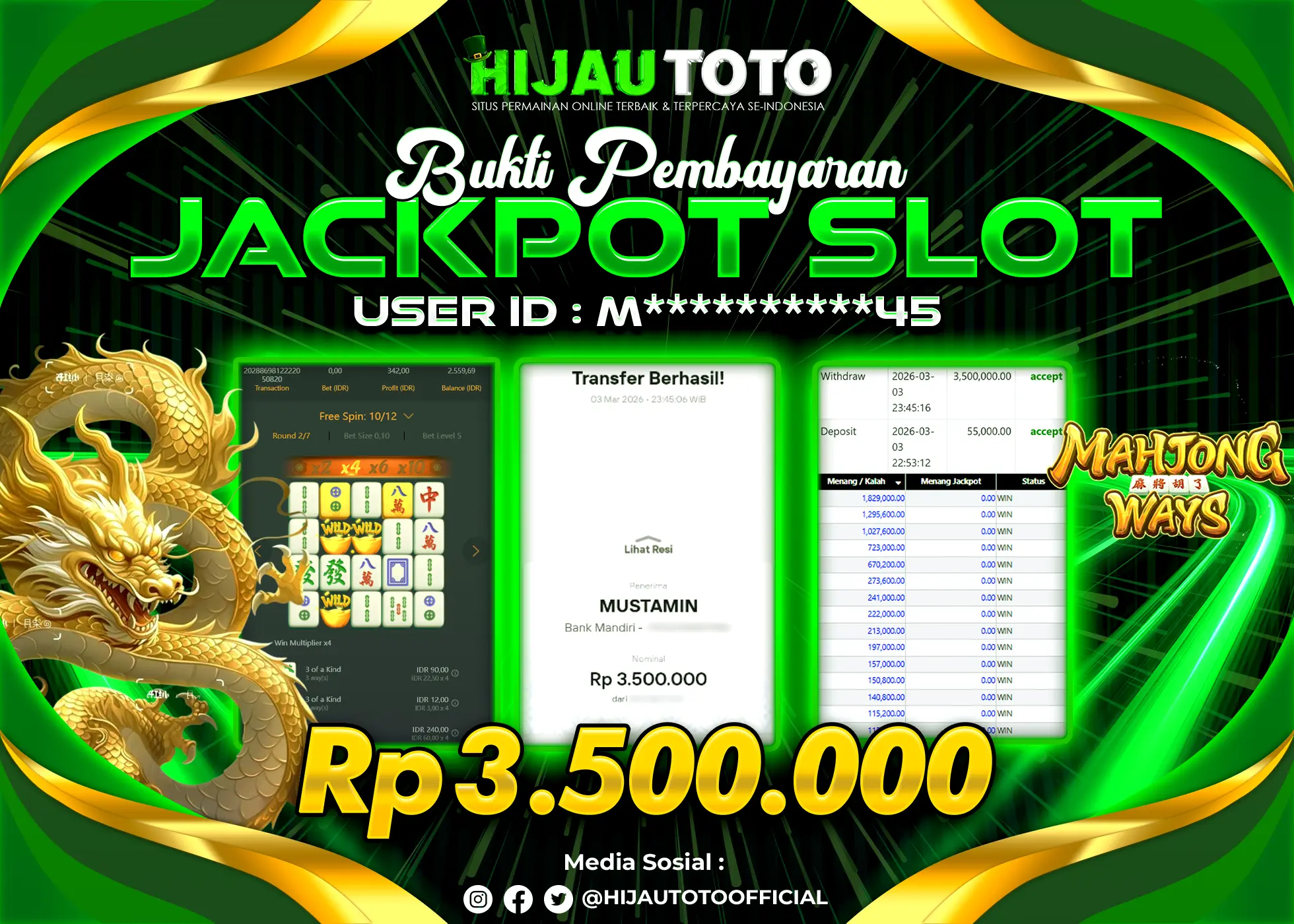 Bergabung dengan HIJAUTOTO sangat mudah dan cepat. Cukup lakukan pendaftaran dengan data lengkap, lakukan deposit minimal Rp5.000 melalui berbagai metode termasuk QRIS, dan mulai bertaruh dengan minimal taruhan Rp100. Dapatkan juga bonus new member 100% untuk modal bermain lebih besar.