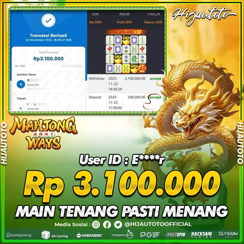 HIJAUTOTO menghadirkan permainan dengan RTP tinggi yang menjamin peluang menang lebih besar bagi para pemain. Setiap permainan slot dan taruhan kami telah diuji untuk memastikan transparansi dan keadilan, memberikan pengalaman bermain yang memuaskan dan menguntungkan.