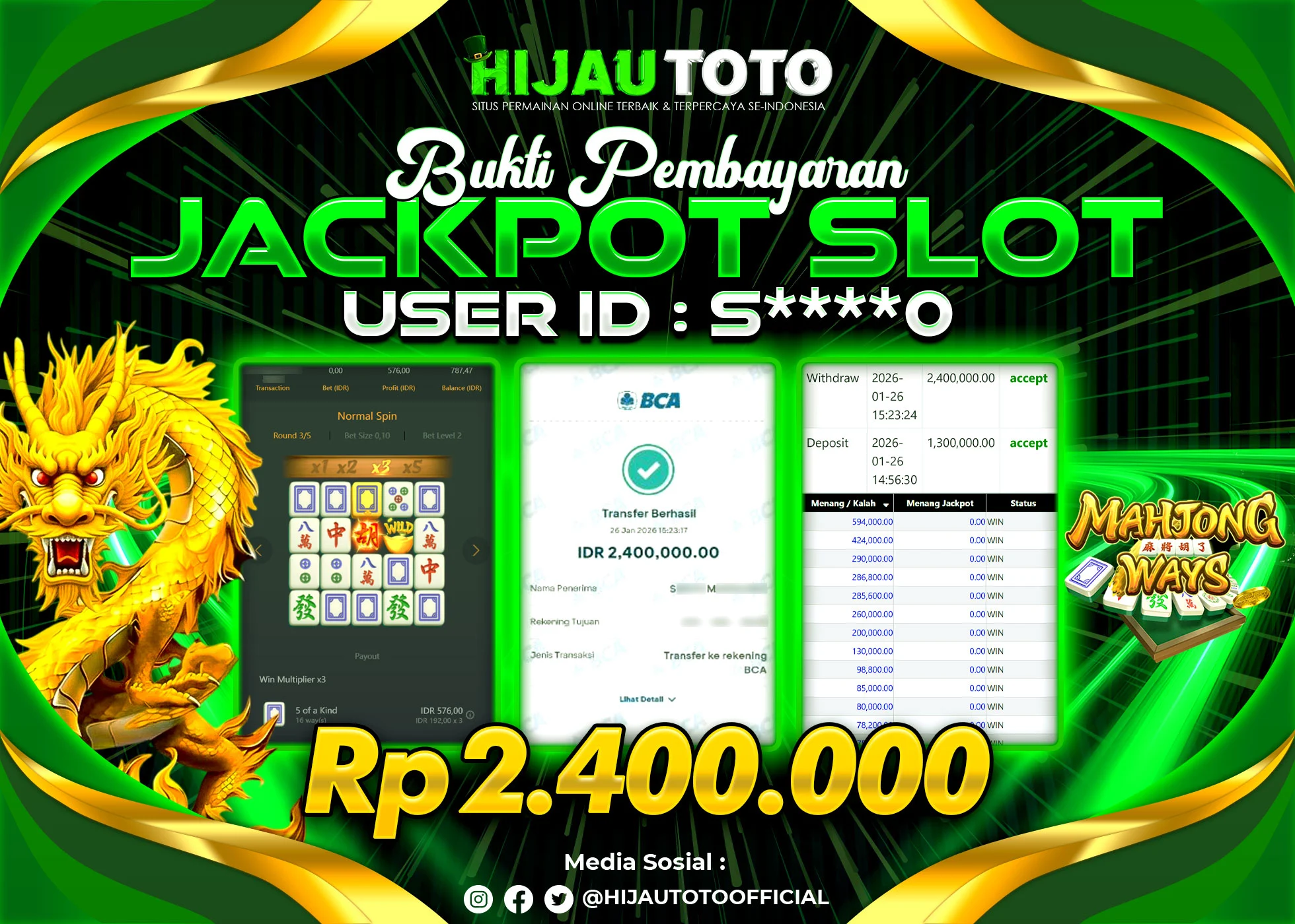 Selamat Kepada Member HIJAUTOTO S****0 Telah Jackpot Di SLOT MAHJONG WAYS