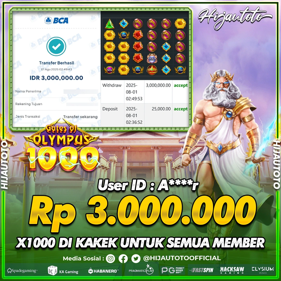 Selamat datang di HIJAUTOTO, tempatnya seru-seruan dan cuan besar! Mulai main cukup dengan modal Rp5.000 aja, taruhan super murah dari Rp100 perak! Mau main slot yang penuh warna? Atau togel dari 20 pasaran paling hits? Atau mungkin tembak ikan yang bikin deg-degan? Tenang, ada juga taruhan bola, sabung ayam, dan live casino yang bikin suasana makin hidup! Daftar sekarang dan dapetin bonus new member 100% langsung, biar modalmu makin tebal. Deposit gampang banget, bisa pakai QRIS, dan kalau butuh bantuan, customer service kita siap 24 jam nonstop. Jadi, tunggu apa lagi? Yuk, gabung dan bawa pulang kemenangannya cuma di HIJAUTOTO!