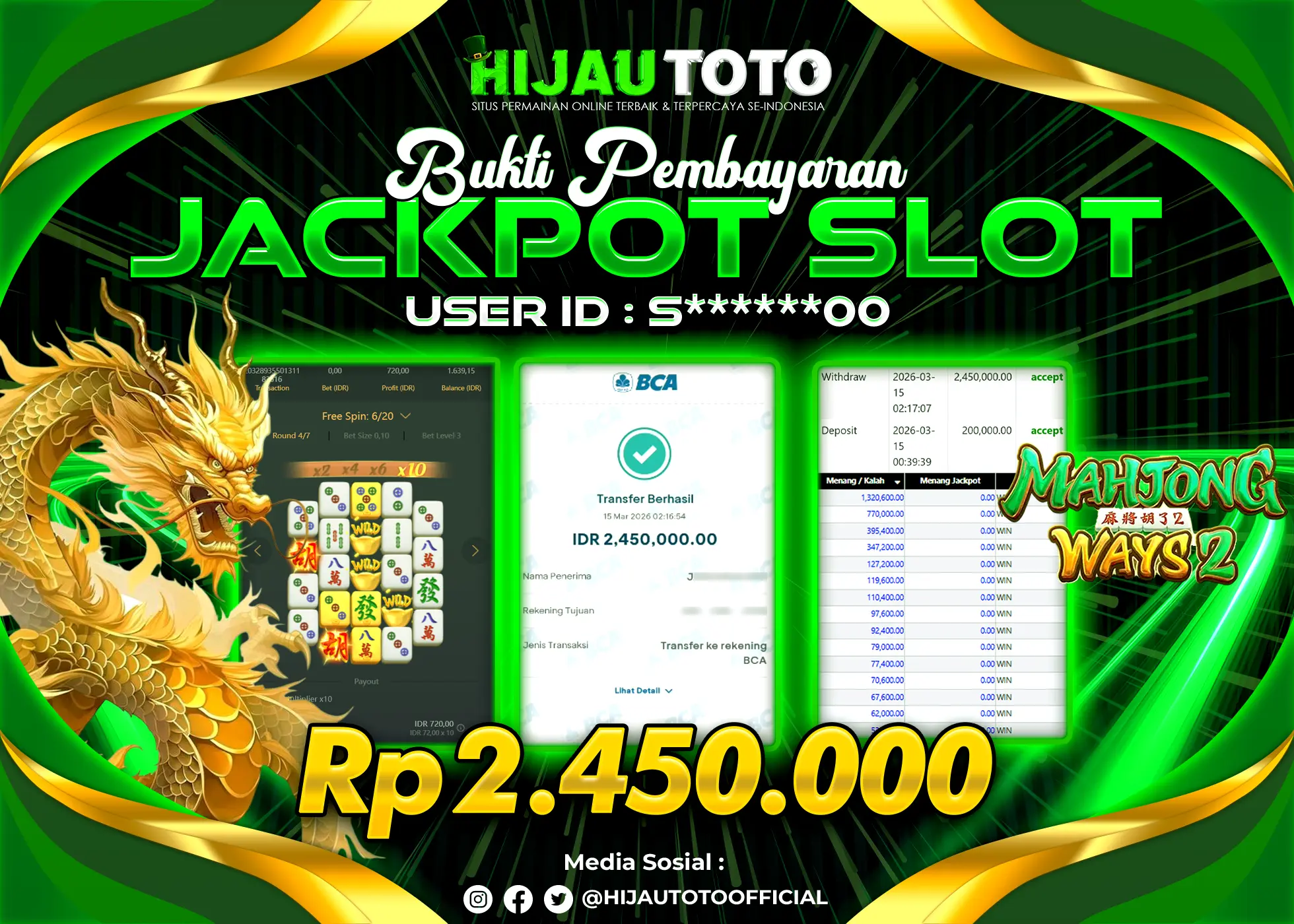 Selamat datang di HIJAUTOTO, tempatnya seru-seruan dan cuan besar! Mulai main cukup dengan modal Rp5.000 aja, taruhan super murah dari Rp100 perak! Mau main slot yang penuh warna? Atau togel dari 20 pasaran paling hits? Atau mungkin tembak ikan yang bikin deg-degan? Tenang, ada juga taruhan bola, sabung ayam, dan live casino yang bikin suasana makin hidup! Daftar sekarang dan dapetin bonus new member 100% langsung, biar modalmu makin tebal. Deposit gampang banget, bisa pakai QRIS, dan kalau butuh bantuan, customer service kita siap 24 jam nonstop. Jadi, tunggu apa lagi? Yuk, gabung dan bawa pulang kemenangannya cuma di HIJAUTOTO!