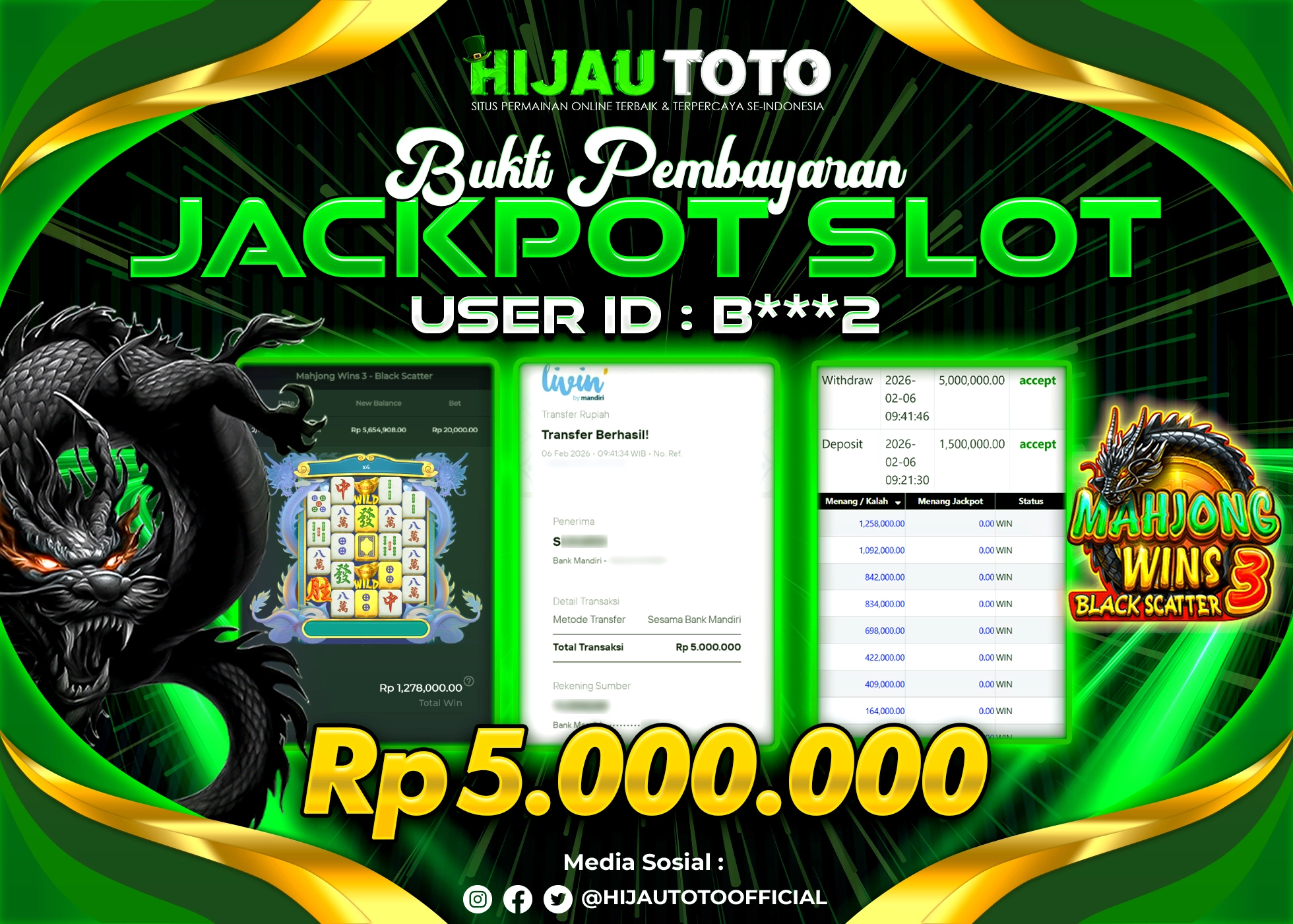 Bergabung dengan HIJAUTOTO sangat mudah dan cepat. Cukup lakukan pendaftaran dengan data lengkap, lakukan deposit minimal Rp5.000 melalui berbagai metode termasuk QRIS, dan mulai bertaruh dengan minimal taruhan Rp100. Dapatkan juga bonus new member 100% untuk modal bermain lebih besar.