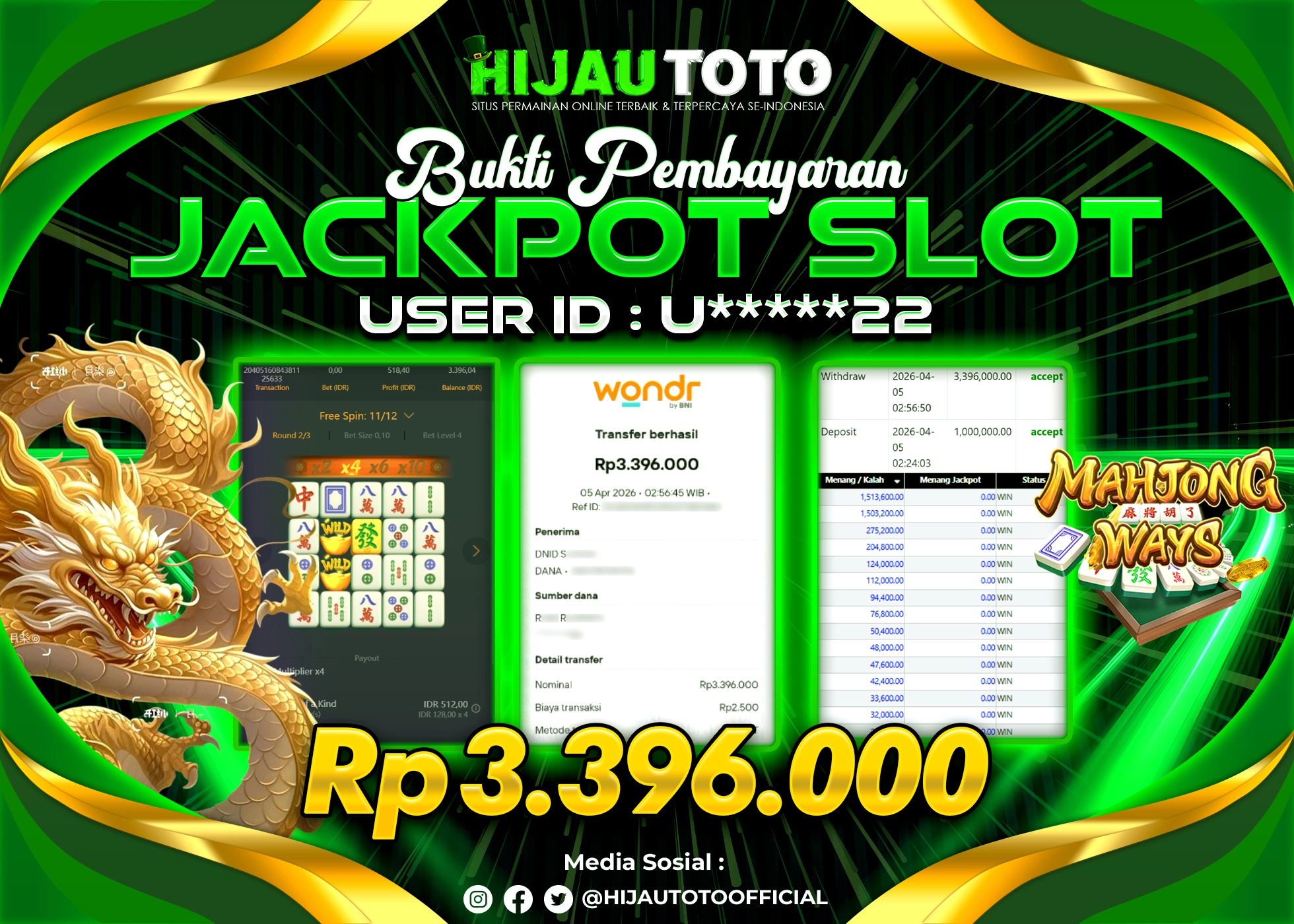 Selamat datang di HIJAUTOTO, tempatnya seru-seruan dan cuan besar! Mulai main cukup dengan modal Rp5.000 aja, taruhan super murah dari Rp100 perak! Mau main slot yang penuh warna? Atau togel dari 20 pasaran paling hits? Atau mungkin tembak ikan yang bikin deg-degan? Tenang, ada juga taruhan bola, sabung ayam, dan live casino yang bikin suasana makin hidup! Daftar sekarang dan dapetin bonus new member 100% langsung, biar modalmu makin tebal. Deposit gampang banget, bisa pakai QRIS, dan kalau butuh bantuan, customer service kita siap 24 jam nonstop. Jadi, tunggu apa lagi? Yuk, gabung dan bawa pulang kemenangannya cuma di HIJAUTOTO!
