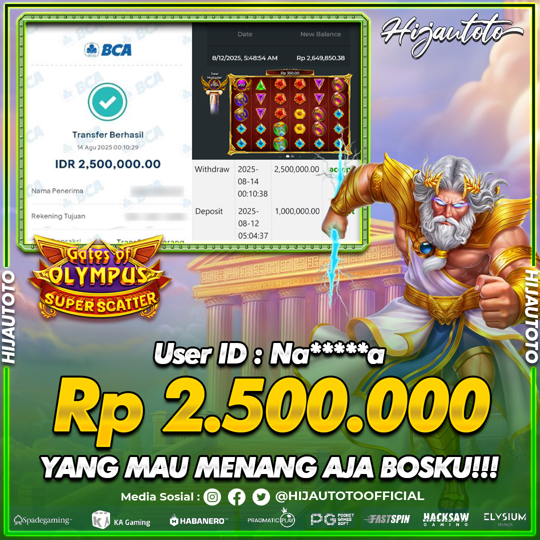 Selamat Kepada Member HIJAUTOTO NA*****A Telah Jackpot Di SLOT GATES OF OLYMPUS SUPER SCATTER