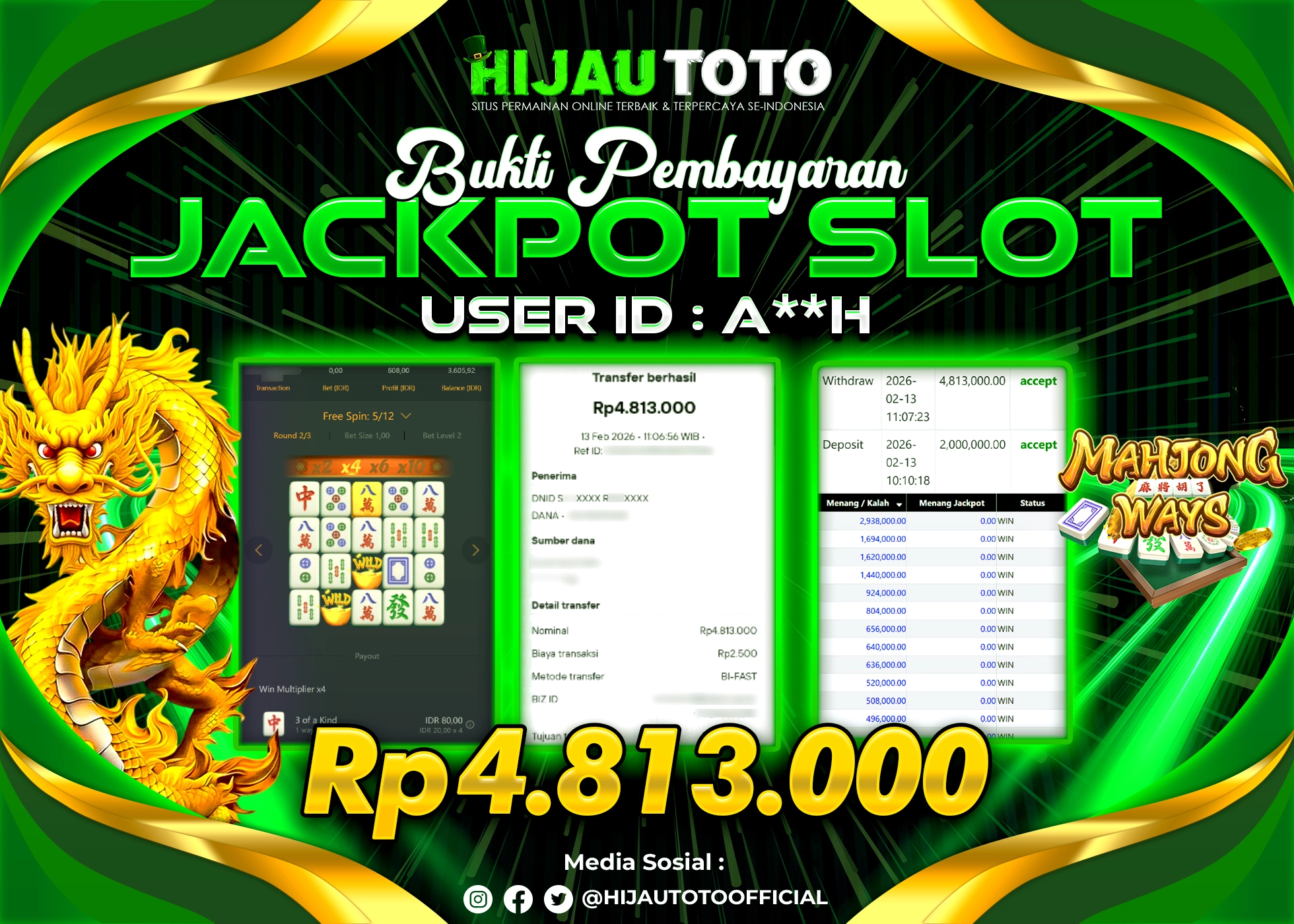 Bergabung dengan HIJAUTOTO sangat mudah dan cepat. Cukup lakukan pendaftaran dengan data lengkap, lakukan deposit minimal Rp5.000 melalui berbagai metode termasuk QRIS, dan mulai bertaruh dengan minimal taruhan Rp100. Dapatkan juga bonus new member 100% untuk modal bermain lebih besar.
