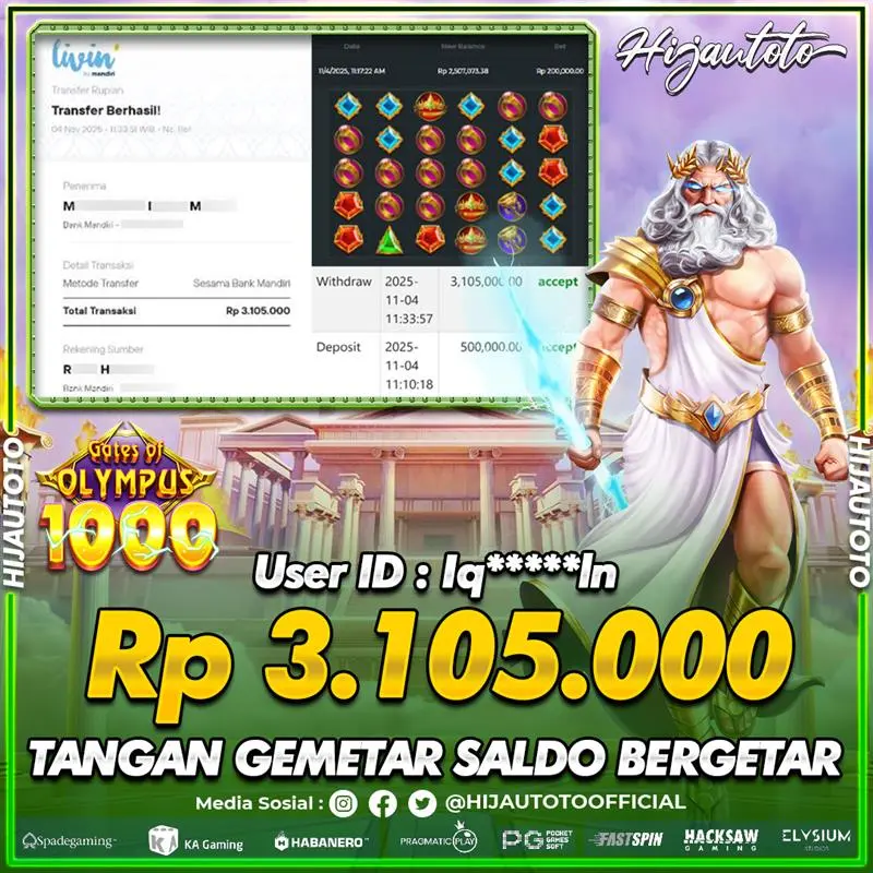 β¨ JACKPOT DI SLOT GATES OF OLYMPUS 1000 β¨
