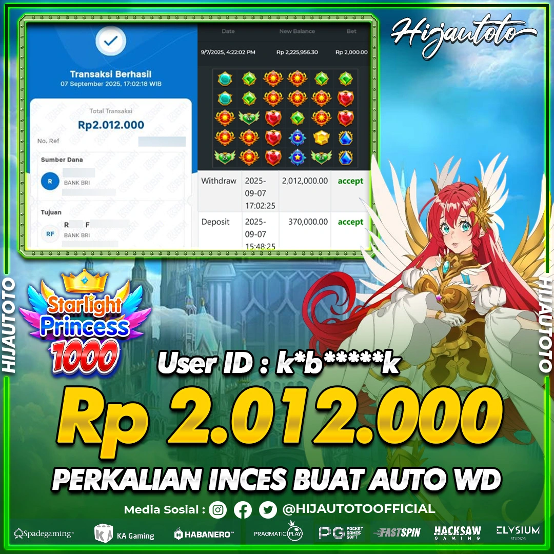 Selamat Kepada Member HIJAUTOTO K*B******K Telah Jackpot Di SLOT STARLIGHT PRINCESS 1000