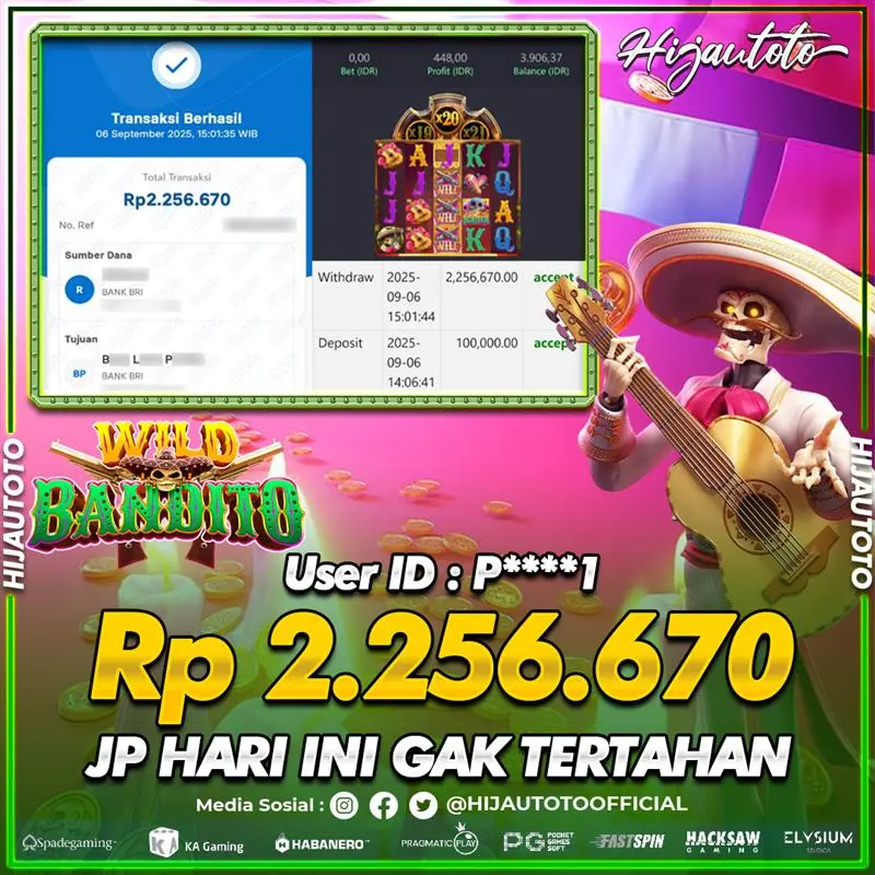 Selamat Kepada Member HIJAUTOTO P****1 Telah Jackpot Di SLOT WILD BANDITO