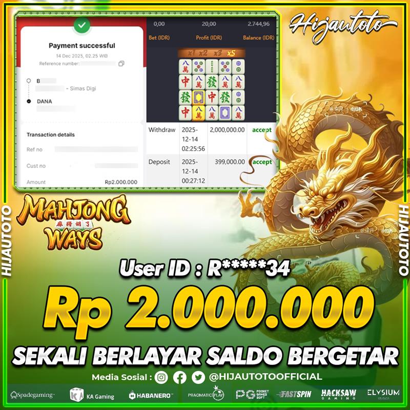 Selamat datang di HIJAUTOTO, tempatnya seru-seruan dan cuan besar! Mulai main cukup dengan modal Rp5.000 aja, taruhan super murah dari Rp100 perak! Mau main slot yang penuh warna? Atau togel dari 20 pasaran paling hits? Atau mungkin tembak ikan yang bikin deg-degan? Tenang, ada juga taruhan bola, sabung ayam, dan live casino yang bikin suasana makin hidup! Daftar sekarang dan dapetin bonus new member 100% langsung, biar modalmu makin tebal. Deposit gampang banget, bisa pakai QRIS, dan kalau butuh bantuan, customer service kita siap 24 jam nonstop. Jadi, tunggu apa lagi? Yuk, gabung dan bawa pulang kemenangannya cuma di HIJAUTOTO!