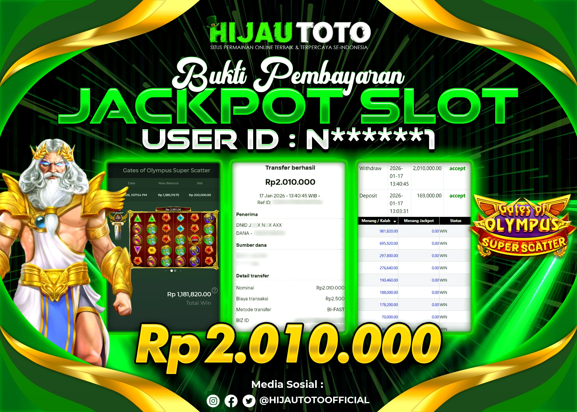 Bergabung dengan HIJAUTOTO sangat mudah dan cepat. Cukup lakukan pendaftaran dengan data lengkap, lakukan deposit minimal Rp5.000 melalui berbagai metode termasuk QRIS, dan mulai bertaruh dengan minimal taruhan Rp100. Dapatkan juga bonus new member 100% untuk modal bermain lebih besar.