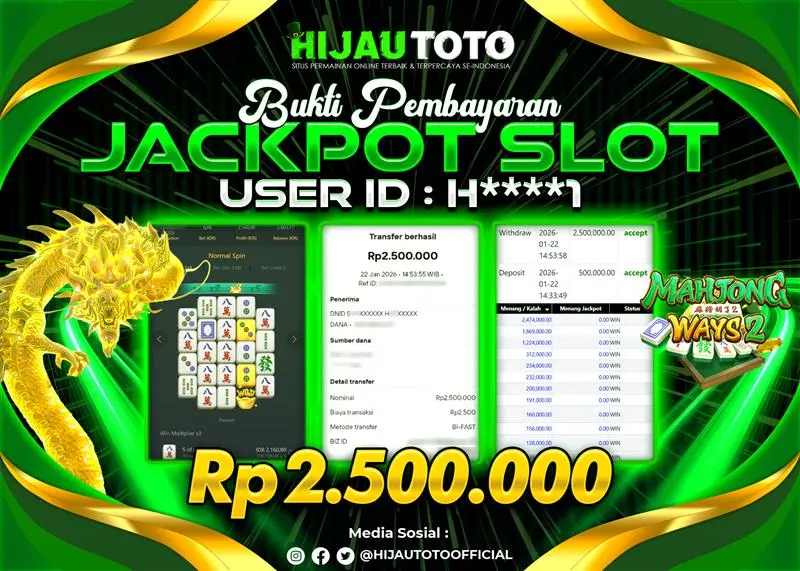 Selamat datang di HIJAUTOTO, tempatnya seru-seruan dan cuan besar! Mulai main cukup dengan modal Rp5.000 aja, taruhan super murah dari Rp100 perak! Mau main slot yang penuh warna? Atau togel dari 20 pasaran paling hits? Atau mungkin tembak ikan yang bikin deg-degan? Tenang, ada juga taruhan bola, sabung ayam, dan live casino yang bikin suasana makin hidup! Daftar sekarang dan dapetin bonus new member 100% langsung, biar modalmu makin tebal. Deposit gampang banget, bisa pakai QRIS, dan kalau butuh bantuan, customer service kita siap 24 jam nonstop. Jadi, tunggu apa lagi? Yuk, gabung dan bawa pulang kemenangannya cuma di HIJAUTOTO!