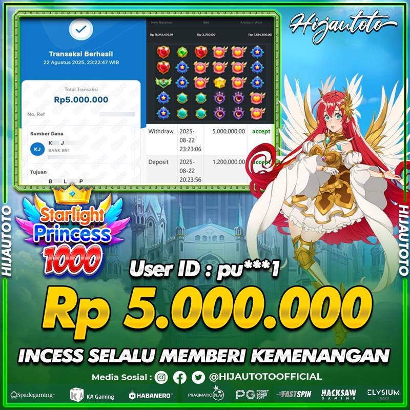 Selamat Kepada Member HIJAUTOTO PU***1 Telah Jackpot Di SLOT STARLIGHT PRINCESS 1000