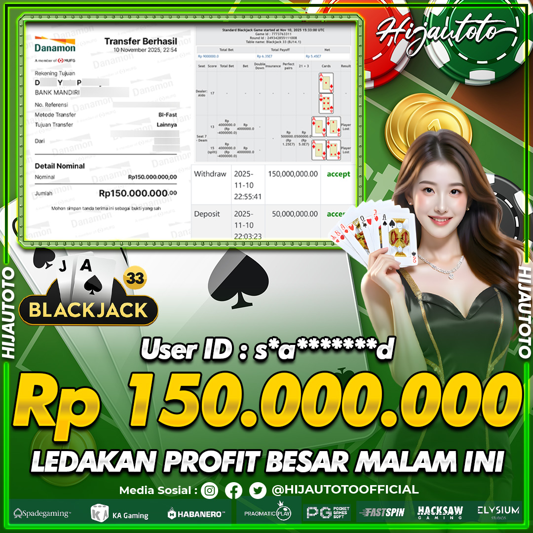 Selamat datang di HIJAUTOTO, tempatnya seru-seruan dan cuan besar! Mulai main cukup dengan modal Rp5.000 aja, taruhan super murah dari Rp100 perak! Mau main slot yang penuh warna? Atau togel dari 20 pasaran paling hits? Atau mungkin tembak ikan yang bikin deg-degan? Tenang, ada juga taruhan bola, sabung ayam, dan live casino yang bikin suasana makin hidup! Daftar sekarang dan dapetin bonus new member 100% langsung, biar modalmu makin tebal. Deposit gampang banget, bisa pakai QRIS, dan kalau butuh bantuan, customer service kita siap 24 jam nonstop. Jadi, tunggu apa lagi? Yuk, gabung dan bawa pulang kemenangannya cuma di HIJAUTOTO!