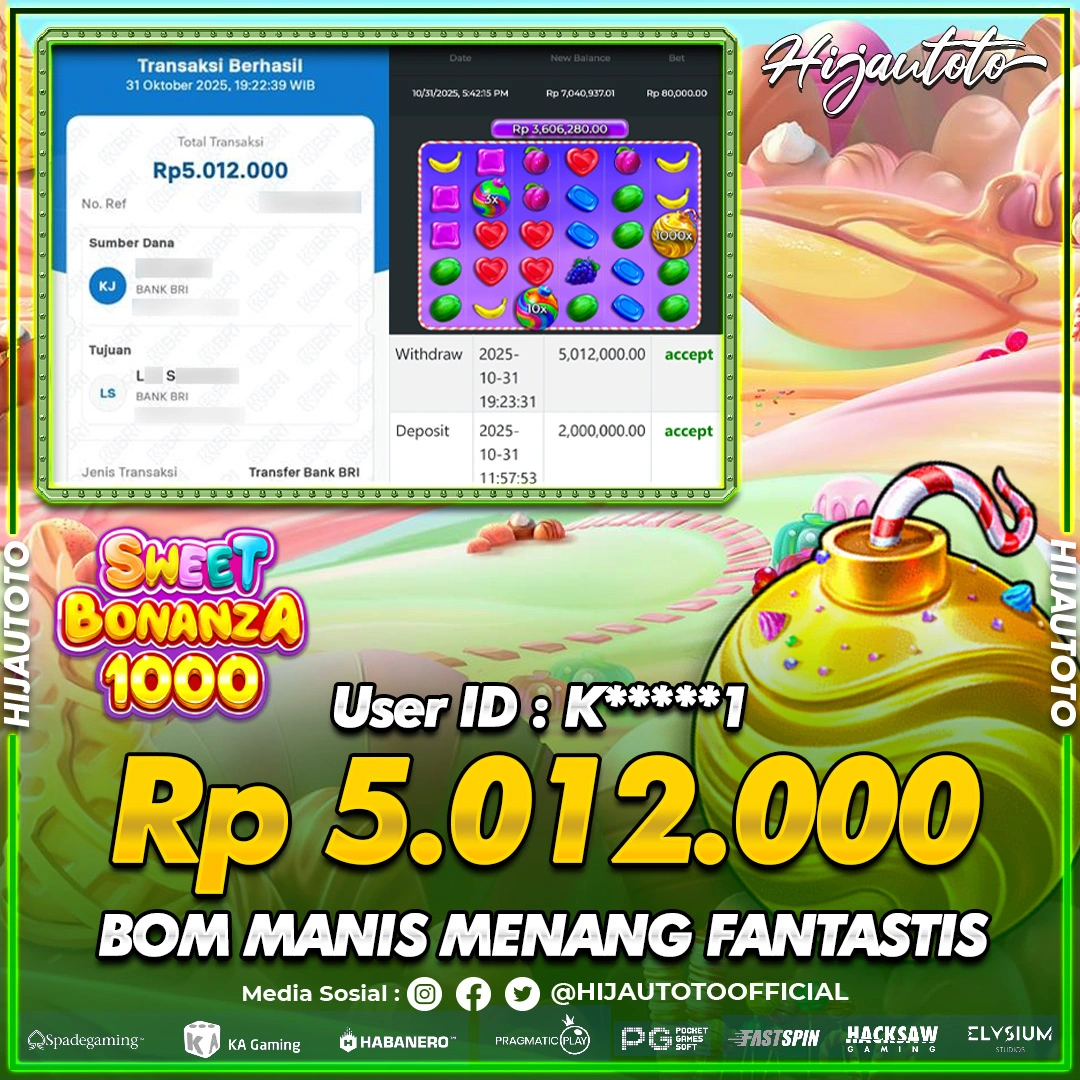 Karena berhasil memenangkan Rp.Rp.6.074.000 dari permainan seru SLOT SWEET BONANZA 1000 di HIJAUTOTO! πŸ’°πŸ’Έ