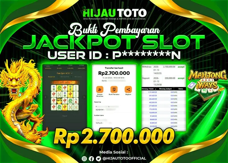 Selamat datang di HIJAUTOTO, tempatnya seru-seruan dan cuan besar! Mulai main cukup dengan modal Rp5.000 aja, taruhan super murah dari Rp100 perak! Mau main slot yang penuh warna? Atau togel dari 20 pasaran paling hits? Atau mungkin tembak ikan yang bikin deg-degan? Tenang, ada juga taruhan bola, sabung ayam, dan live casino yang bikin suasana makin hidup! Daftar sekarang dan dapetin bonus new member 100% langsung, biar modalmu makin tebal. Deposit gampang banget, bisa pakai QRIS, dan kalau butuh bantuan, customer service kita siap 24 jam nonstop. Jadi, tunggu apa lagi? Yuk, gabung dan bawa pulang kemenangannya cuma di HIJAUTOTO!