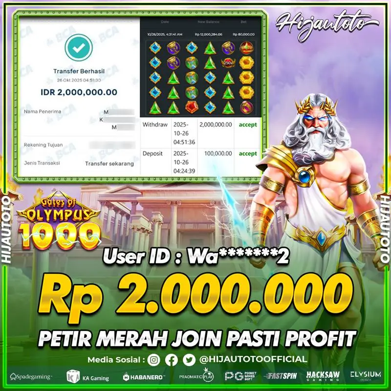 Karena berhasil memenangkan Rp.Rp.2.000.000 dari permainan seru SLOT GATES OF OLYMPUS SUPER SCATTER di HIJAUTOTO! πŸ’°πŸ’Έ