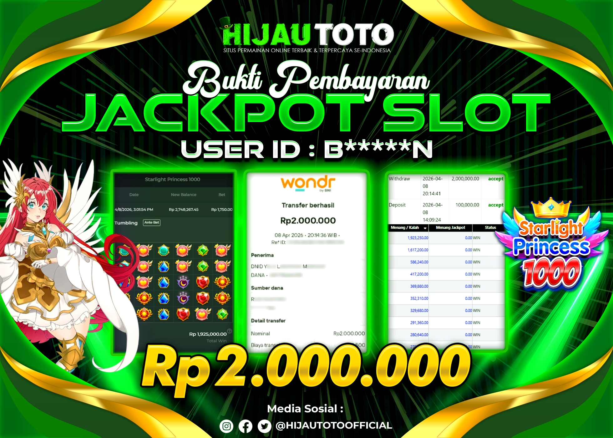 Selamat datang di HIJAUTOTO, tempatnya seru-seruan dan cuan besar! Mulai main cukup dengan modal Rp5.000 aja, taruhan super murah dari Rp100 perak! Mau main slot yang penuh warna? Atau togel dari 20 pasaran paling hits? Atau mungkin tembak ikan yang bikin deg-degan? Tenang, ada juga taruhan bola, sabung ayam, dan live casino yang bikin suasana makin hidup! Daftar sekarang dan dapetin bonus new member 100% langsung, biar modalmu makin tebal. Deposit gampang banget, bisa pakai QRIS, dan kalau butuh bantuan, customer service kita siap 24 jam nonstop. Jadi, tunggu apa lagi? Yuk, gabung dan bawa pulang kemenangannya cuma di HIJAUTOTO!