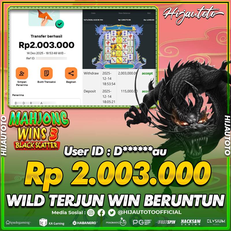 Cuma di HIJAUTOTO, tempat paling AMAN, CEPAT, & TERPERCAYA buat pecinta game SLOT MAHJONG WINS 3 BLACK SCATTER!