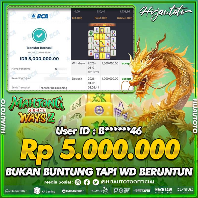 Selamat datang di HIJAUTOTO, tempatnya seru-seruan dan cuan besar! Mulai main cukup dengan modal Rp5.000 aja, taruhan super murah dari Rp100 perak! Mau main slot yang penuh warna? Atau togel dari 20 pasaran paling hits? Atau mungkin tembak ikan yang bikin deg-degan? Tenang, ada juga taruhan bola, sabung ayam, dan live casino yang bikin suasana makin hidup! Daftar sekarang dan dapetin bonus new member 100% langsung, biar modalmu makin tebal. Deposit gampang banget, bisa pakai QRIS, dan kalau butuh bantuan, customer service kita siap 24 jam nonstop. Jadi, tunggu apa lagi? Yuk, gabung dan bawa pulang kemenangannya cuma di HIJAUTOTO!