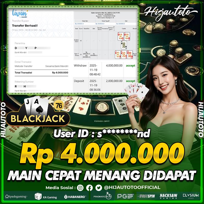 Nikmati pengalaman bermain casino langsung dari dealer profesional dalam fitur Live Casino HIJAUTOTO. Bermain blackjack, roulette, baccarat, dan permainan casino klasik lainnya secara real-time dengan suasana yang autentik dan interaktif.