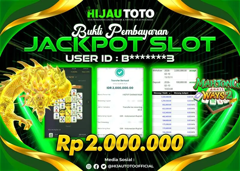 Selamat datang di HIJAUTOTO, tempatnya seru-seruan dan cuan besar! Mulai main cukup dengan modal Rp5.000 aja, taruhan super murah dari Rp100 perak! Mau main slot yang penuh warna? Atau togel dari 20 pasaran paling hits? Atau mungkin tembak ikan yang bikin deg-degan? Tenang, ada juga taruhan bola, sabung ayam, dan live casino yang bikin suasana makin hidup! Daftar sekarang dan dapetin bonus new member 100% langsung, biar modalmu makin tebal. Deposit gampang banget, bisa pakai QRIS, dan kalau butuh bantuan, customer service kita siap 24 jam nonstop. Jadi, tunggu apa lagi? Yuk, gabung dan bawa pulang kemenangannya cuma di HIJAUTOTO!