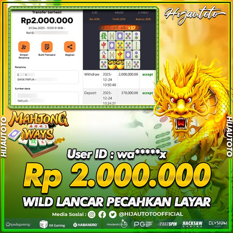Selamat Kepada Member HIJAUTOTO A****A Telah Jackpot Di SLOT MAHJONG WAYS 2