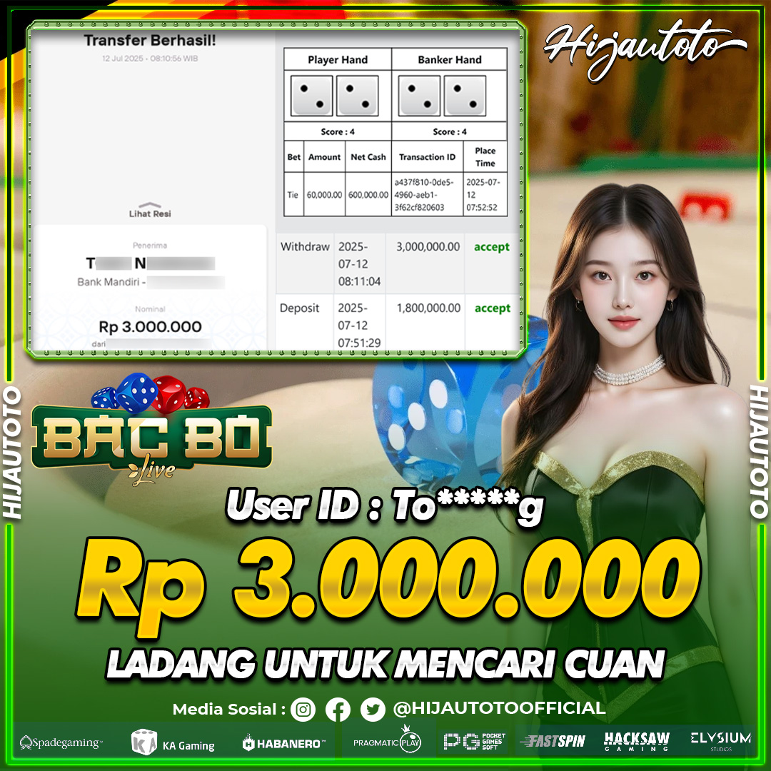 Selamat datang di HIJAUTOTO, tempatnya seru-seruan dan cuan besar! Mulai main cukup dengan modal Rp5.000 aja, taruhan super murah dari Rp100 perak! Mau main slot yang penuh warna? Atau togel dari 20 pasaran paling hits? Atau mungkin tembak ikan yang bikin deg-degan? Tenang, ada juga taruhan bola, sabung ayam, dan live casino yang bikin suasana makin hidup! Daftar sekarang dan dapetin bonus new member 100% langsung, biar modalmu makin tebal. Deposit gampang banget, bisa pakai QRIS, dan kalau butuh bantuan, customer service kita siap 24 jam nonstop. Jadi, tunggu apa lagi? Yuk, gabung dan bawa pulang kemenangannya cuma di HIJAUTOTO!